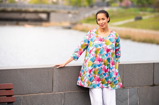 We use double fabric in the cuffs of AINO coats and tunics so that you can roll up any sleeve and it will still look stylish without having to cut it shorter. Nearly all AINO coats and tunics include pockets. We pay attention to the details of the pockets, too: the pockets are always made discreet yet sufficiently deep and roomy. In the coats, we use a strong cotton fabric for the pockets so that they are durable and remain prim in use.