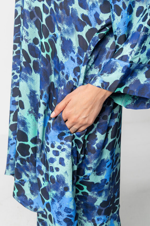 The Bianca tunic features a loose-fit silhouette and a wide hem. It has a round neckline and wide kimono sleeves, as well as practical side pockets on both sides. Soft and elegantly shiny viscose satin fabric.
