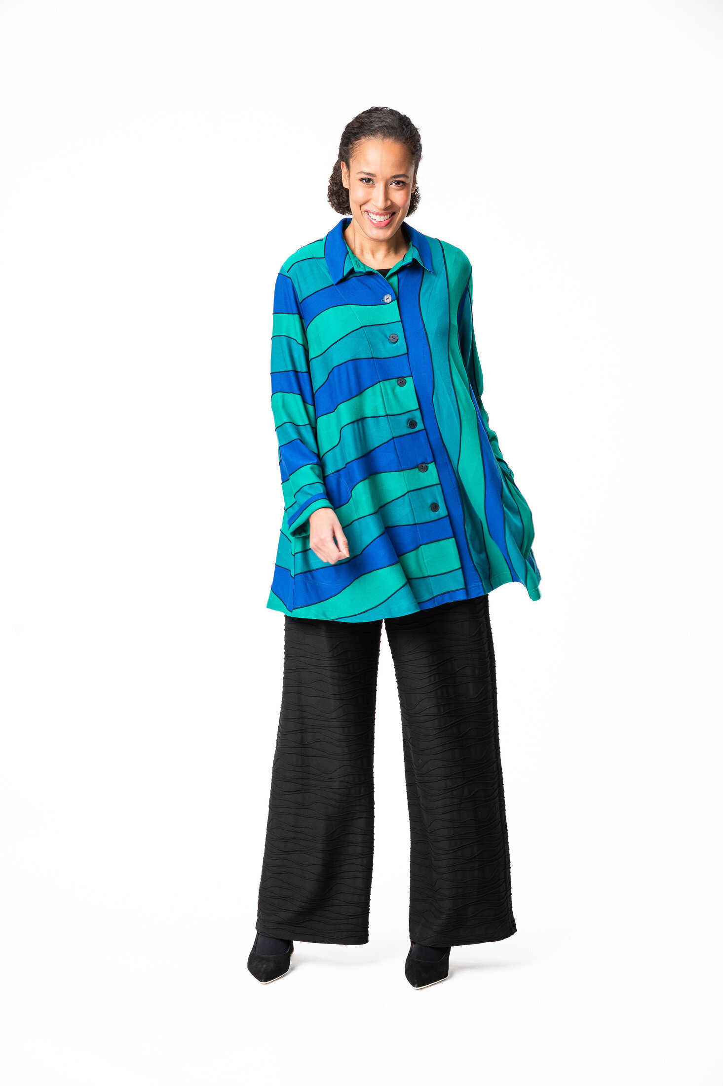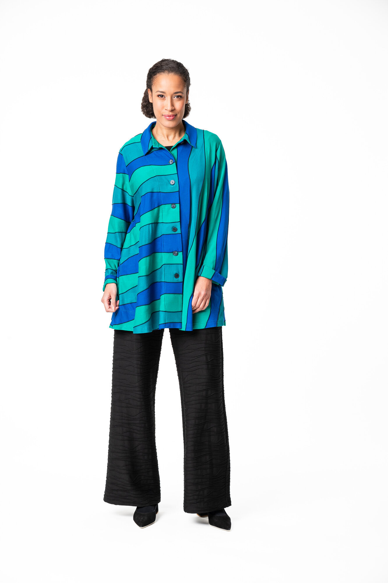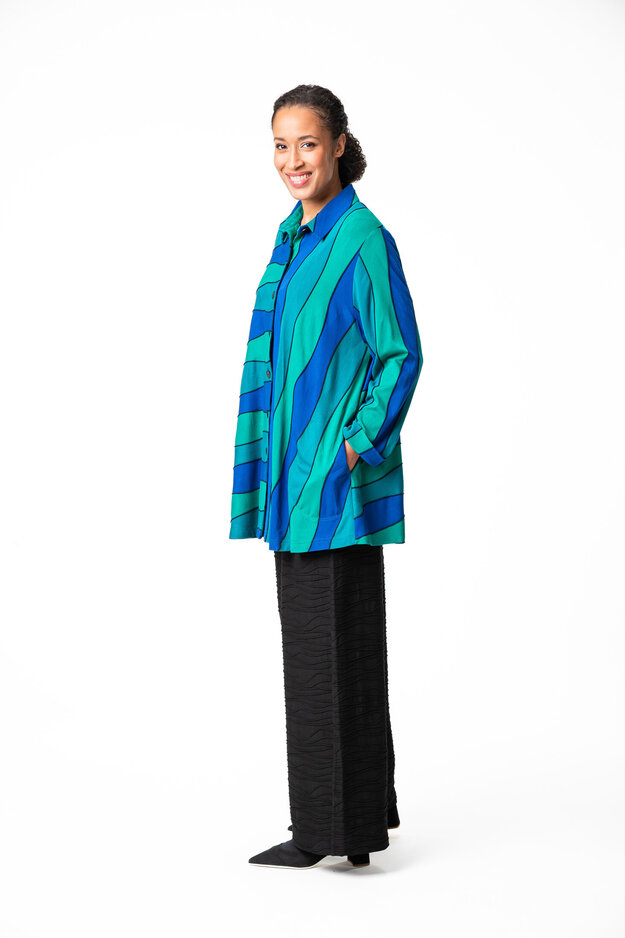 Nita on rento, A-linjainen napitettu paitajakku. Jakussa on pitkät hihat, pukeva kaulus ja sivusaumataskut. Materiaali on miellyttävän ohutta viskoositrikoota.