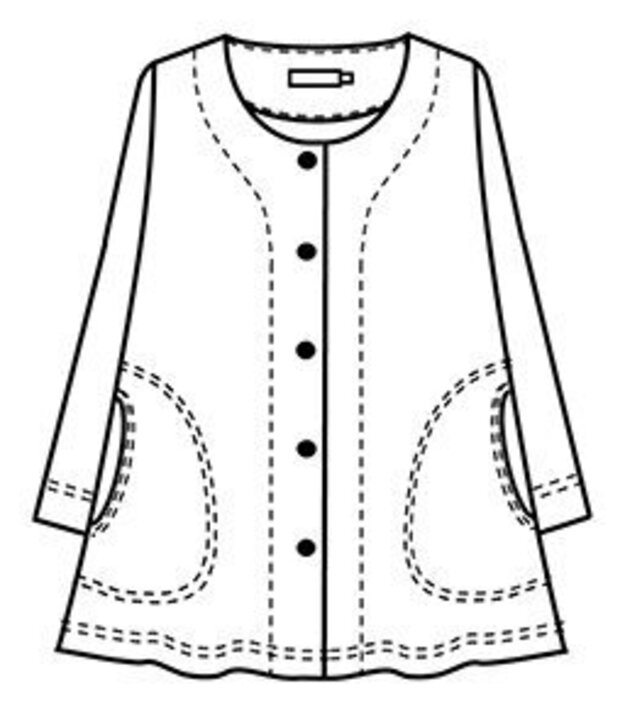 Staras -jakussa on pyöreä pääntie. Jakku on malliltaan väljähkö ja siinä on pitkät hihat ja isot taskut sivuilla.