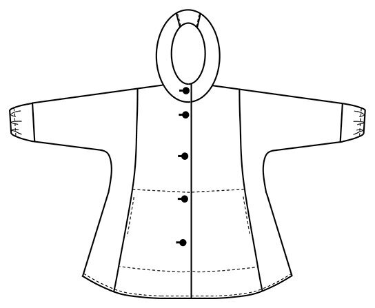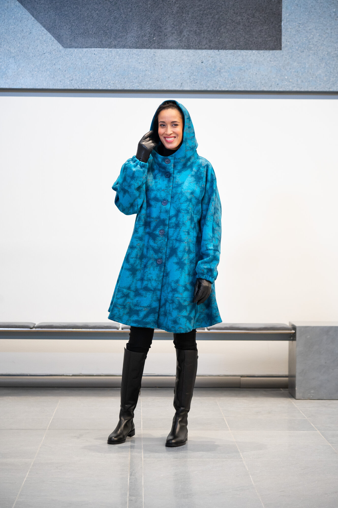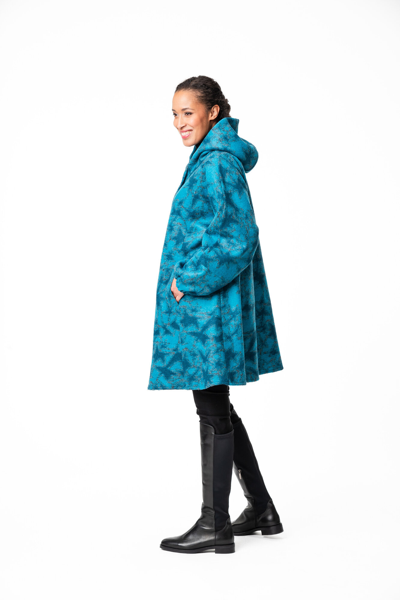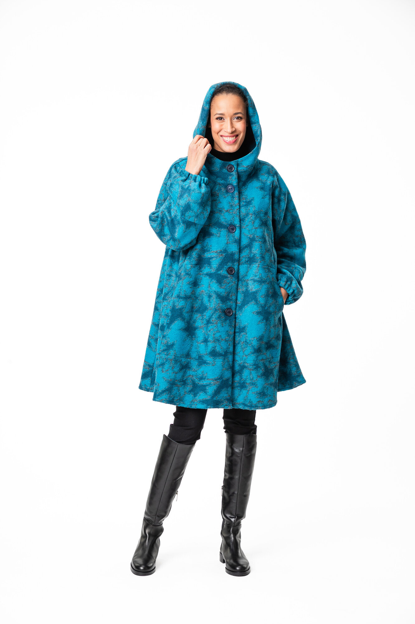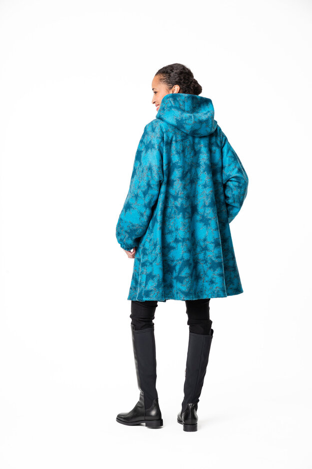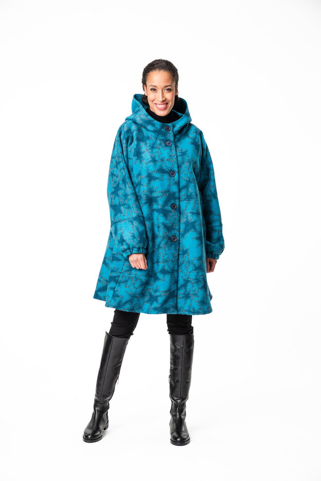 Hupullinen Babette -villakangastakki on reilu ja rento mitoitukseltaan ja siinä on väljä helma. Takissa on reilu kädentie ja hihat. Hihojen suut on rypytetty kuminauhalla. Myös povitasku löytyy takin sisäpuolella. Takki on kevyt päällä, mutta sen päällys- ja vuorikankaan välissä on kevyt windstopper/lämpövanu, joka tekee siihen tuulenpitävyyttä ja lämpimyyttä.
