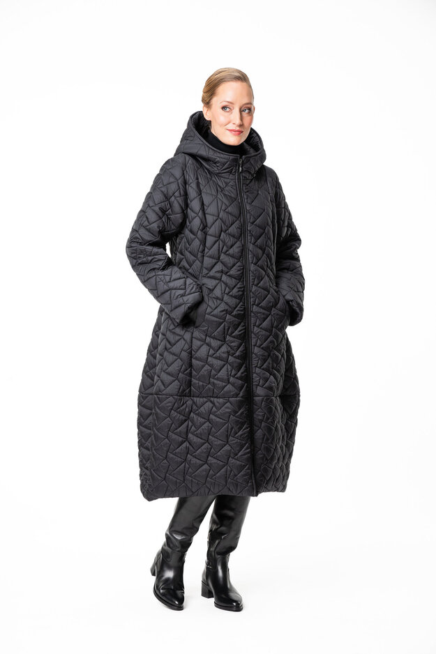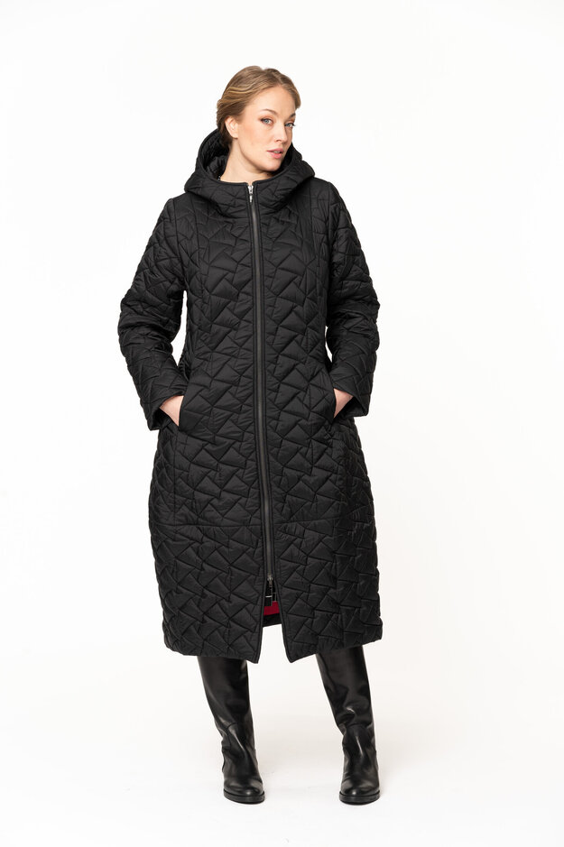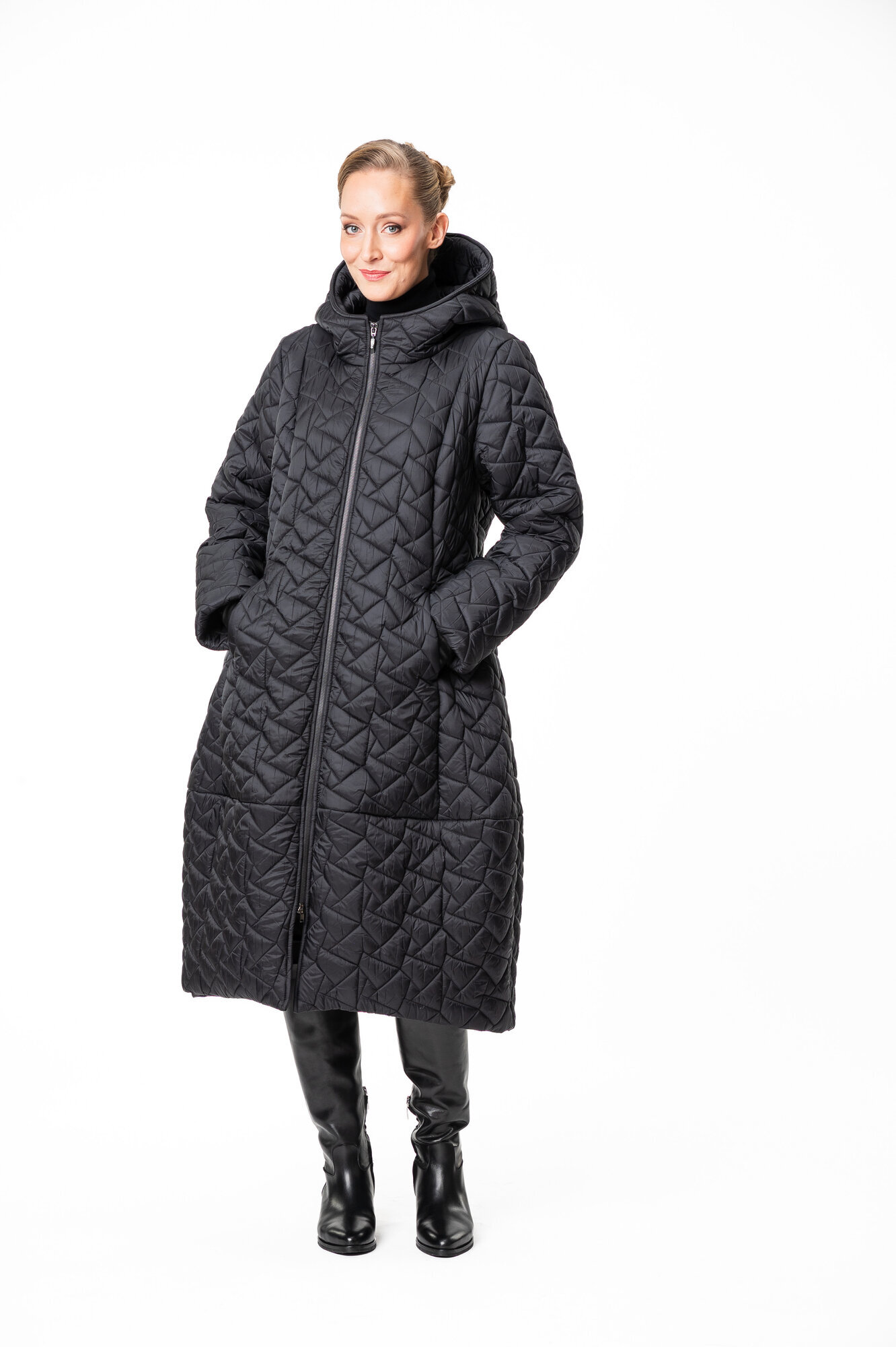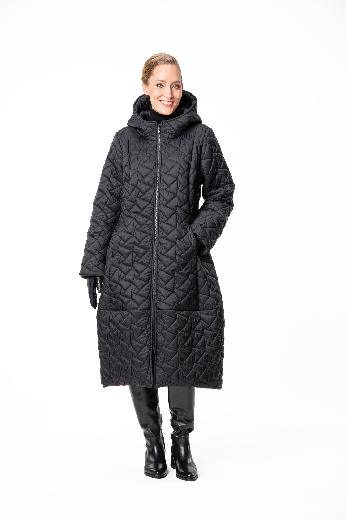 Tyylikkäässä Miranda -talvitakissa on istuva yläosa ja hauska pallomainen helma. Pitkä takki sopii hyvin käytettäväksi mekkojen kanssa. Takin päällyskangas on käsitelty vettähylkiväksi. Takissa on kahteen suuntaan avattava vetoketju, pystytaskut ja huppu. Takkien taskuissa käytämme tukevaa puuvillakangasta, joka pitää taskun ryhdin ja on kestävä käytössä. Myös povitasku löytyy takin sisäpuolella. Takissa on 100% viskoosivuori.