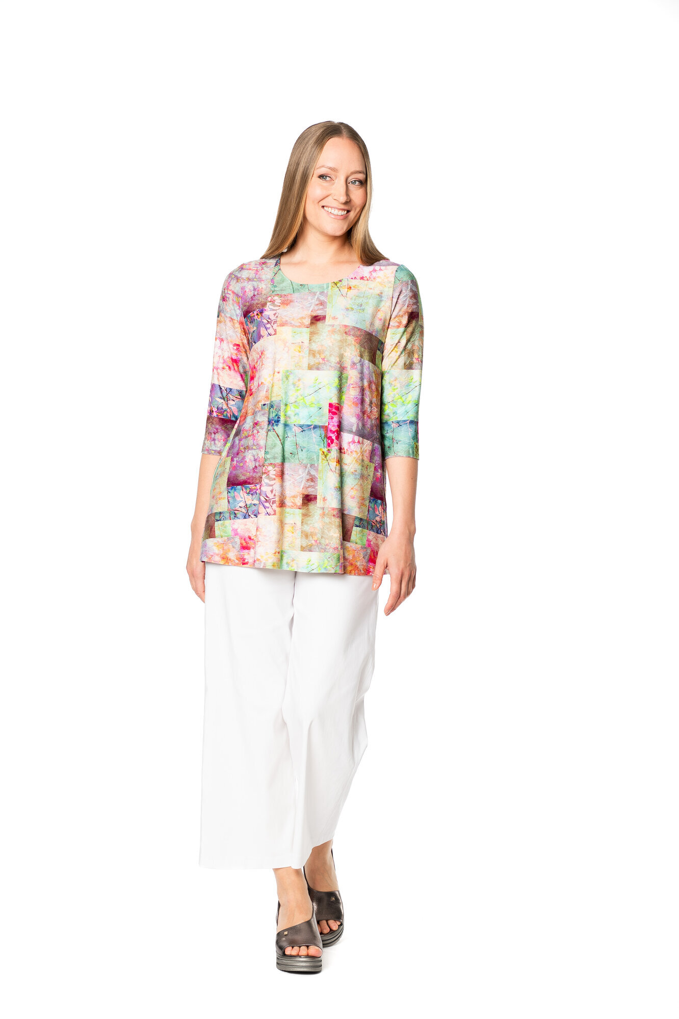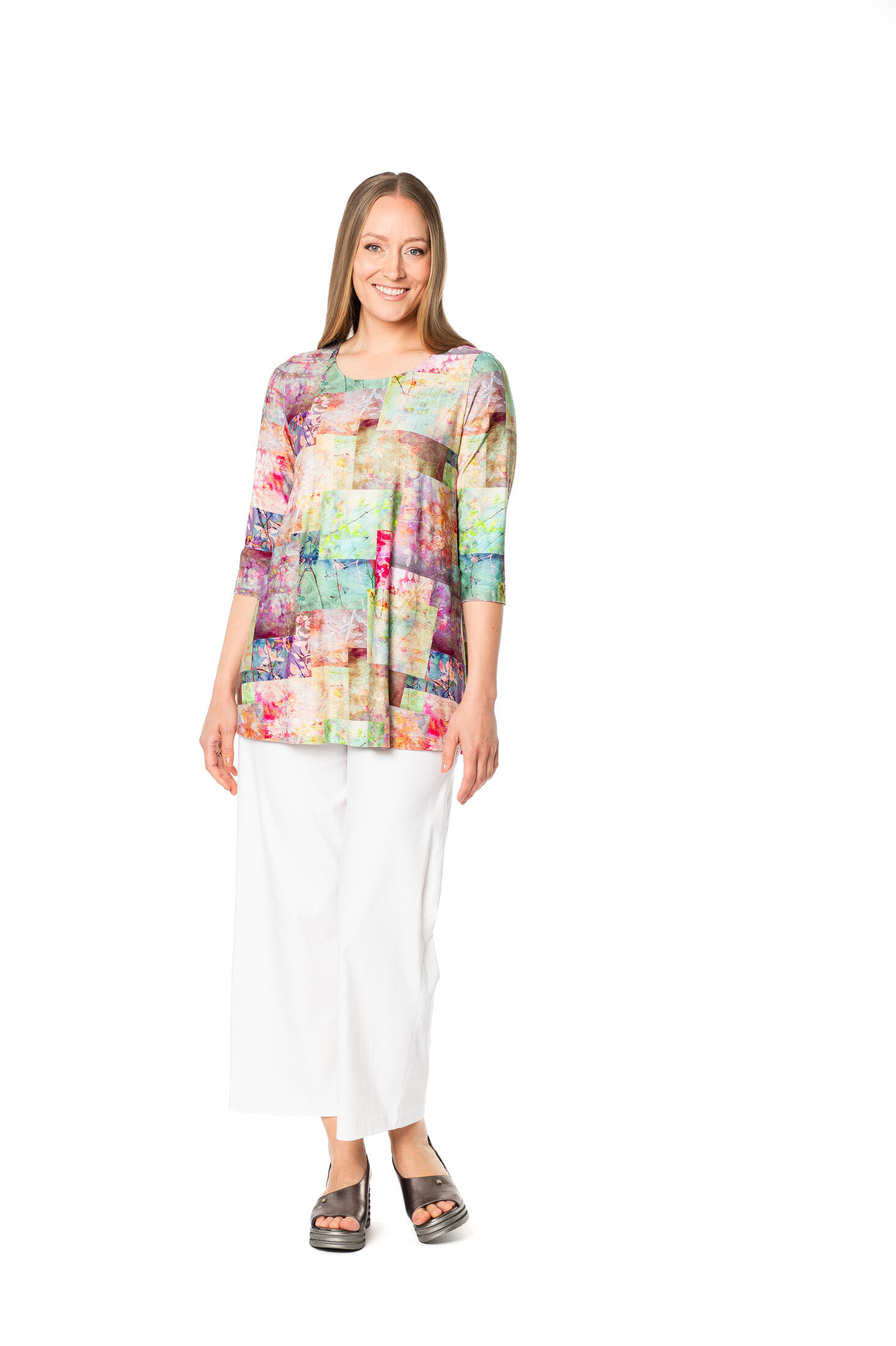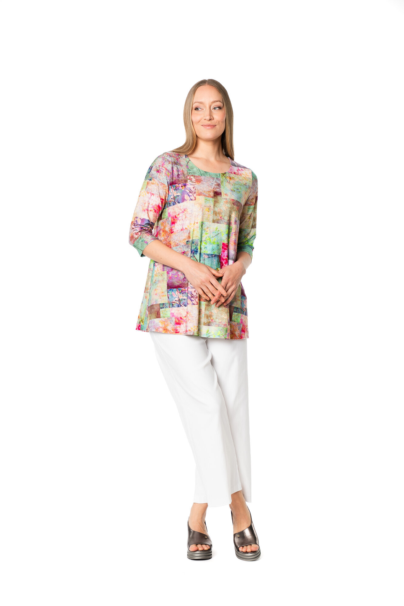 Alma on AINOn pienempi perustunika. Tunika on yläosastaan istuva, siinä on hieman levenevä helma, pyöreä pääntie sekä ¾ mittaiset hihat. Sivusaumassa on kätevät taskut. Materiaali on miellyttävän pehmeää ja laskeutuvaa viskoositrikoota.
