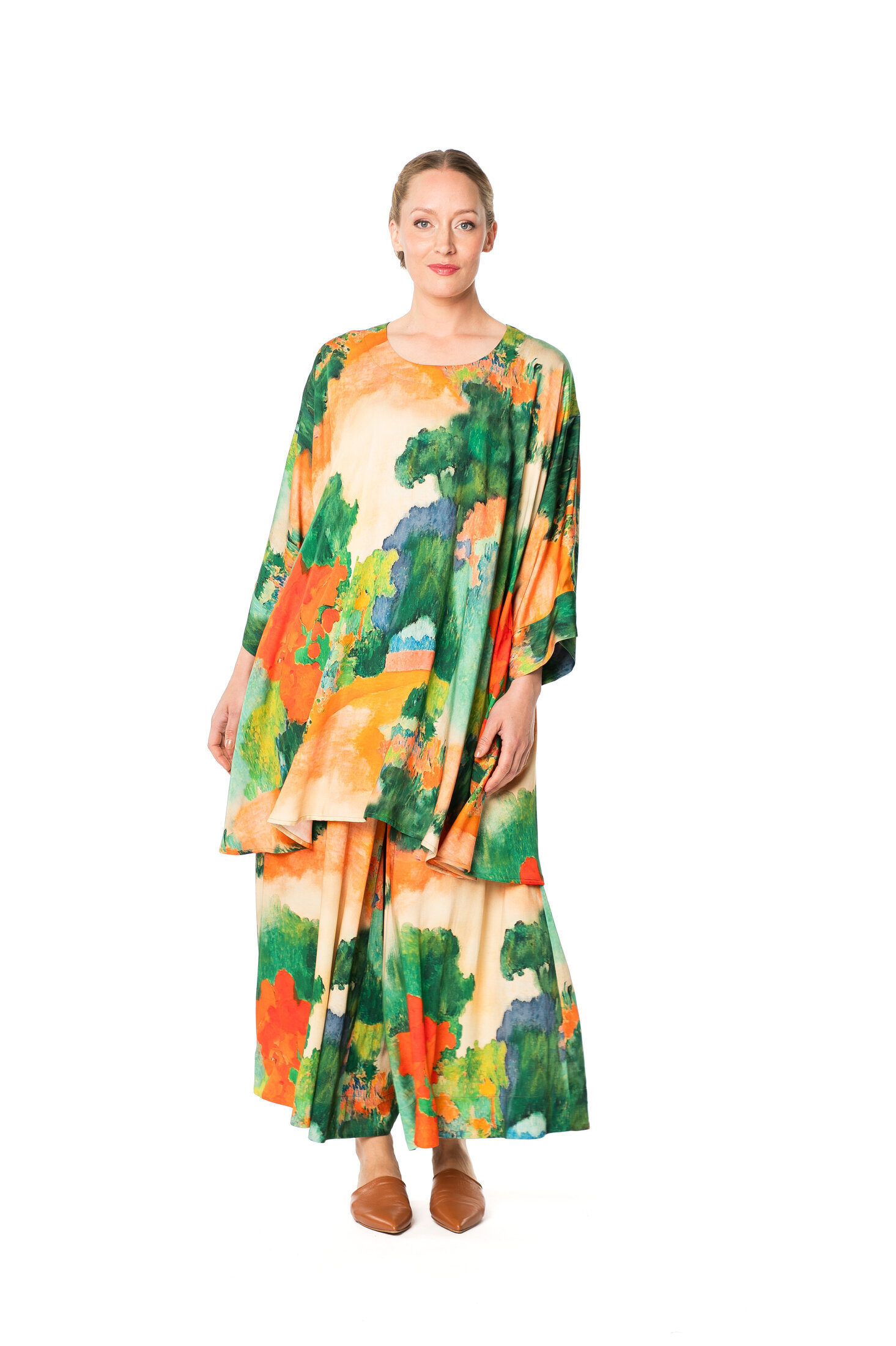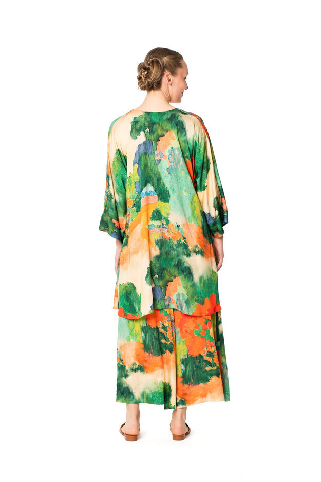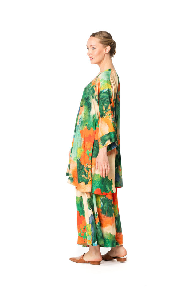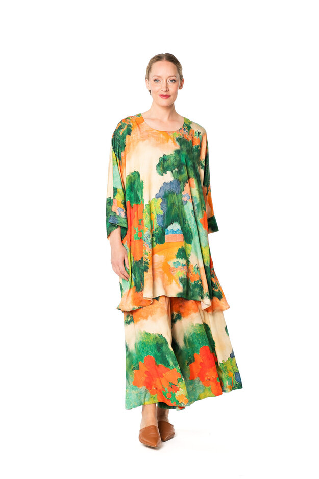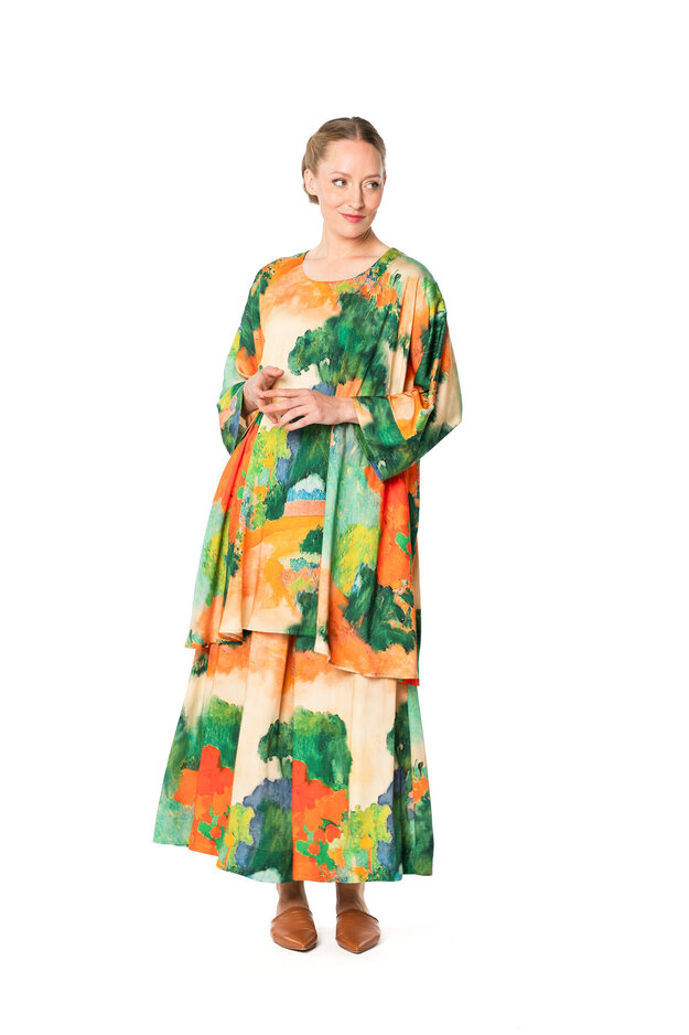 Bianca-tunikassa on reilu mitoitus ja kellomainen helma. Tunikassa on leveät kimonomalliset hihat ja pyöreä pääntie. Sivusaumoissa on kätevät taskut. Materiaali on laskeutuvaa viskoosia.